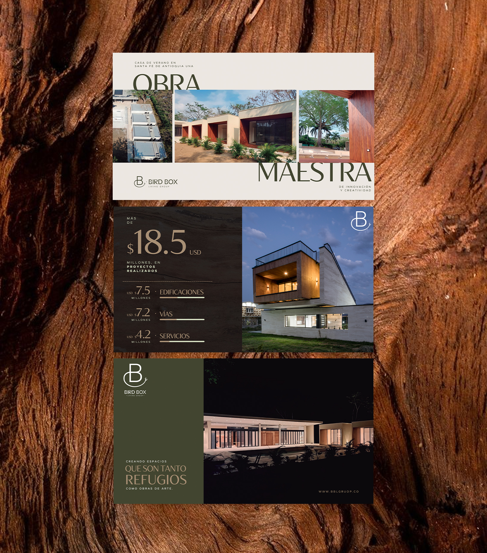 Bird Box fue creada desde cero, cuidando cada detalle. Desde el nombre hasta la identidad visual, construimos una marca que refleja amor por la arquitectura, la ingeniería y el buen gusto. Nos inspiramos en la naturaleza y en la forma en que las aves construyen sus nidos: con inteligencia, estética y respeto por los recursos. El resultado es una marca sólida, elegante y consciente, donde diseño y funcionalidad conviven en equilibrio.